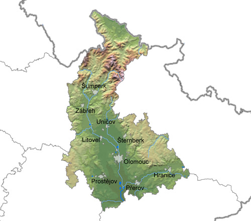 Olomoucký kraj (www.kr-olomoucky.cz) tvoří 5 okresů - Jeseník, Olomouc, Prostějov, Přerov a Šumperk. Správním centrem kraje je Olomouc. Sídelní struktura kraje je značně diferenciovaná, pro území Hané je typická převaha větších venkovských sídel. V horském reliéfu okresů Šumperk a Jeseník je sídelní struktura rozdrobena do malých sídel.