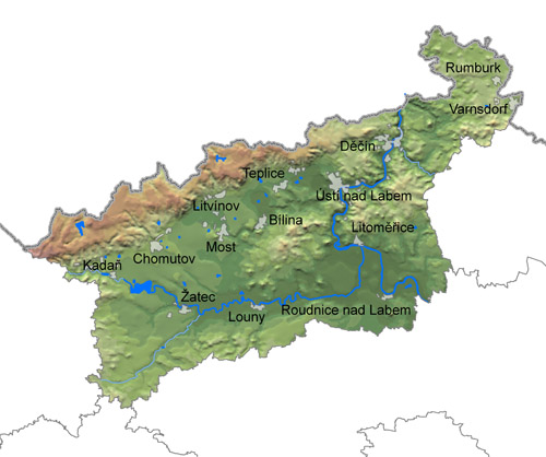 Správním centrem Ústeckého kraje (www.kr-ustecky.cz) je Ústí nad Labem, město s jedním největších železničních uzlů v ČR a největším říčním přístavem na Labi. Území kraje hraničí převážnou částí s Německem a v ČR s krajem Karlovarským, Libereckým, Středočeským a velice malou částí i s krajem Plzeňským. Je tvořen sedmi okresy - Děčín, Chomutov, Litoměřice, Louny, Most, Teplice a Ústí nad Labem. Celkově je tato oblast charakteristická značným zprůmyslněním, těžbou uhlí a výrobou a zůstává tak oblastí s nejvíce poškozeným životním prostředím i přes útlum těžby uhlí a odsiřovaní elektráren.